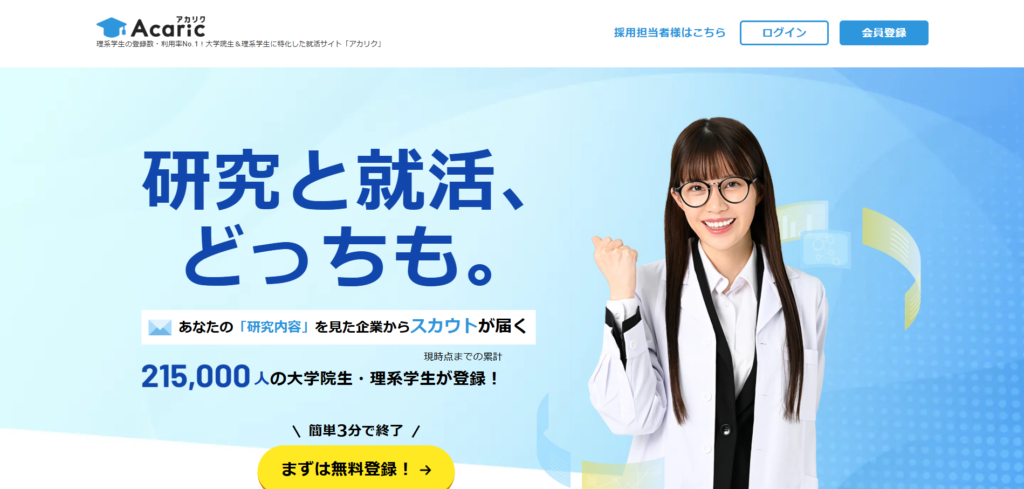 情報掲載型理系マイナビ、リクナビなど選考対策・ES研究ができる。選考通過率を上げたい人向け。
