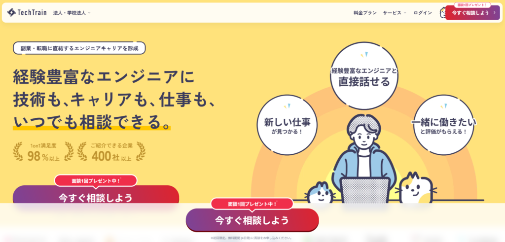 一番の魅力は、ITエンジニア専門のアドバイザーによる選考対策です。ES添削やポートフォリオの作り込み、技術面接の対策までマンツーマンでサポート。