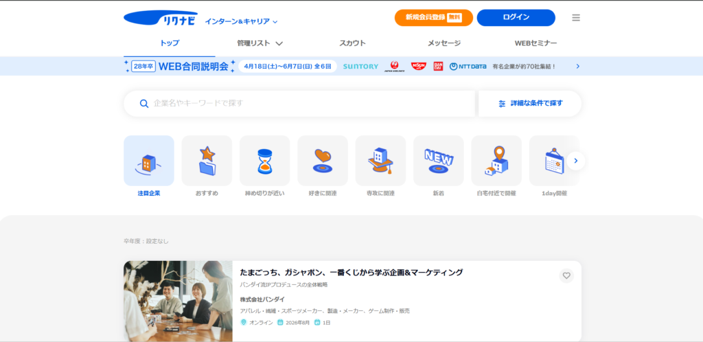 • 条件や業界を絞って膨大な求人の中から志望企業を探せる